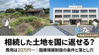 不動産歴40年が語る相続した土地を国に返せる?費用は20万円〜|国庫帰属制度の条件と落とし穴 実家の土地や山林を国に返せる?相続土地国庫帰属制度の条件や費用(20万円〜)を不動産歴40年の筆者が解説。「審査に通らない土地」や申請手順、制度が使えない時の代替案まで詳しく紹介します。相続した土地の管理・処分にお悩みの方必見の完全ガイド。 2025.12.07不動産歴40年が語る
